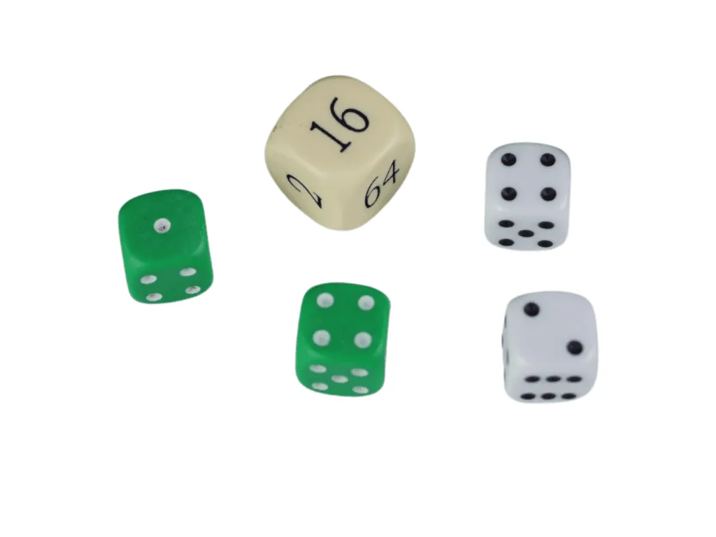 Replacement Backgammon Dice Set – Cream Doubling Cube – White & Green Dices