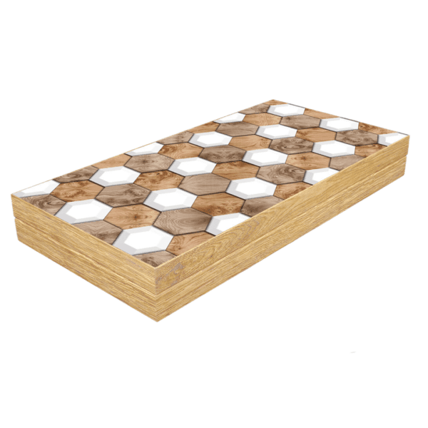 Crafted with precision, our Honeycomb backgammon set features a meticulous pattern applied to MDF surfaces,made with protective varnish and finished with an additional layer of glossy varnish.