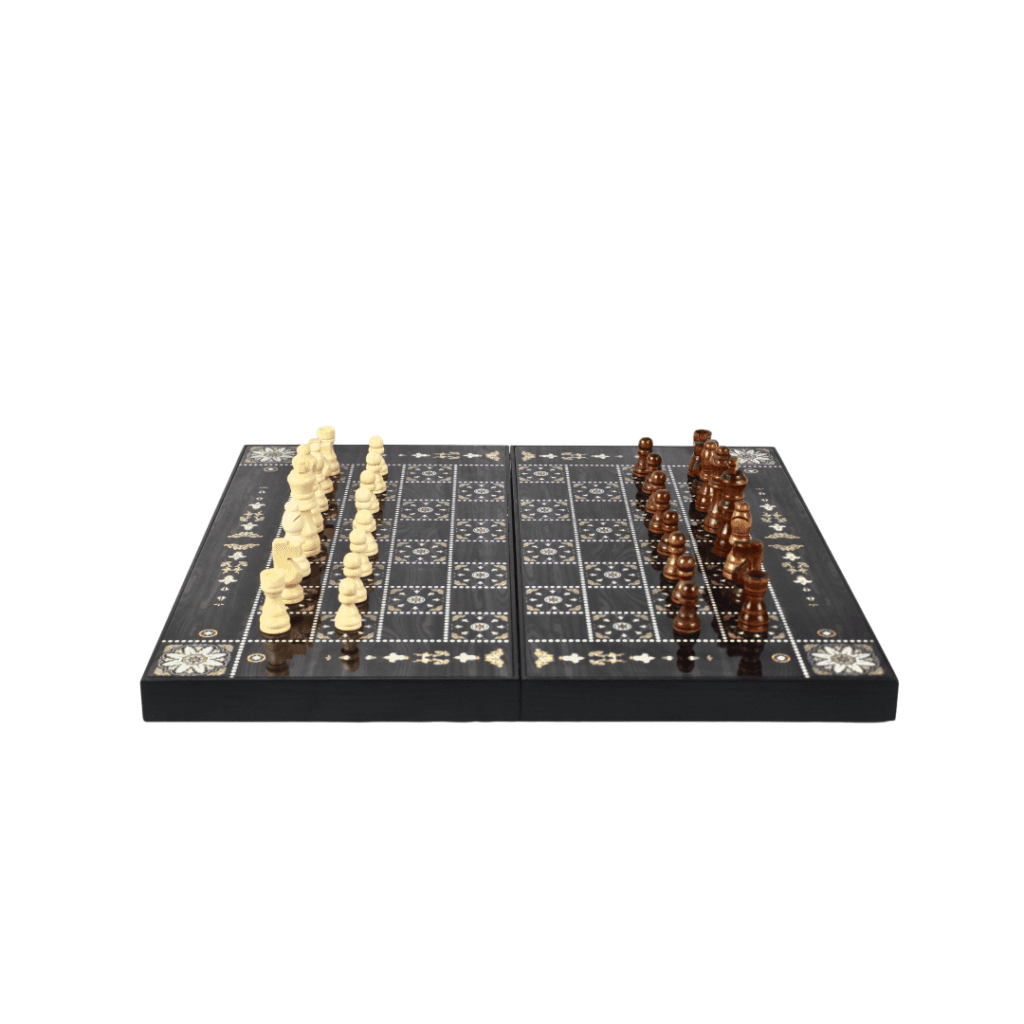 Wooden Pearl Design Chess & Backgammon Set 19 Inch