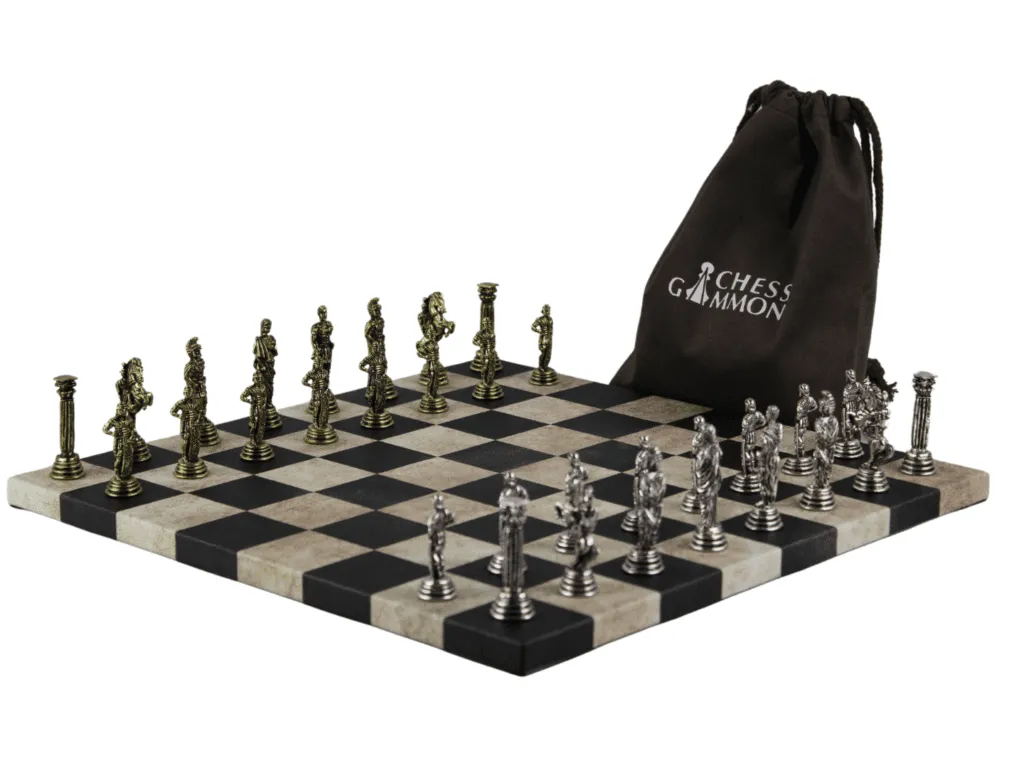 Elevate your chess game with our Black Leatherette Personalised Metal Chess Set, complete with a stylish drawstring bag. This 14-inch chess set features finely crafted metal pieces set against a sophisticated black leatherette chessboard, offering both elegance and durability. The chessboard and pieces can be customized with engraved details, making it a perfect gift for chess enthusiasts or a distinguished addition to your collection. The set comes with a convenient drawstring bag for easy storage and portability, so you can take your game on the go. Whether for display or play, this chess set blends luxury with functionality in every move.