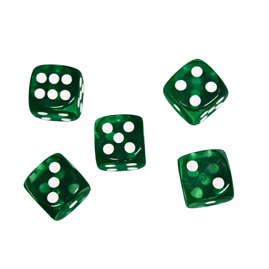 These Translucent Dark Green 14 mm D6 Dice with White Dots are a striking choice for any tabletop game. Made from quality resin, their vivid Dark Green finish offers a crystal-clear appearance that catches the eye. The white pips are sharply engraved for easy visibility during play. At 14 mm, they’re compact yet comfortable to roll and handle. Balanced for smooth, reliable performance in every throw. A perfect blend of style, clarity, and function for board games and role-playing adventures.