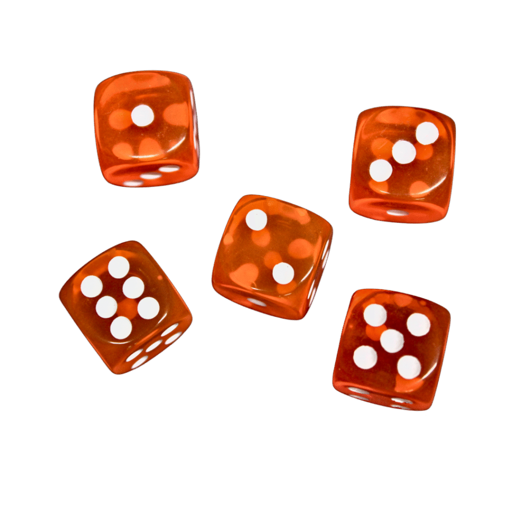 - These Translucent Orange 14 mm D6 Dice with White Dots are a striking choice for any tabletop game