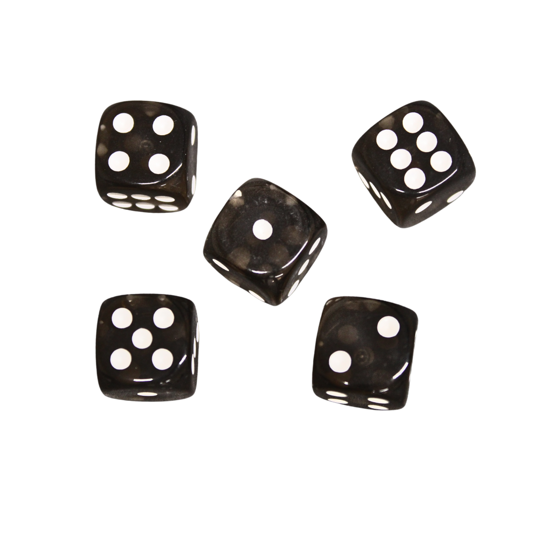 Translucent Black 14 mm D6 Roll Playing Game Dices with White Dots